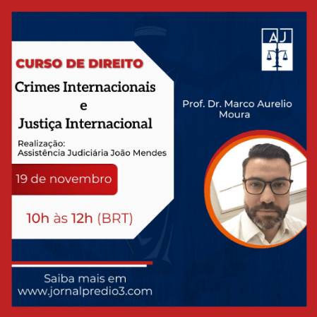 A Assistência Judiciária João Mendes (AJ), órgão de orientação jurídica gratuita à população de baixa renda, dos alunos e antigos alunos da Faculdade de Direito do Mackenzie, anuncia a realização do Curso “Crimes Internacionais e Justiça Internacional”, que será ministrado pelo Prof. Dr. Marco Aurelio Moura dos Santos. Será abordado no curso: Conceito de crimes... Continuar Lendo →