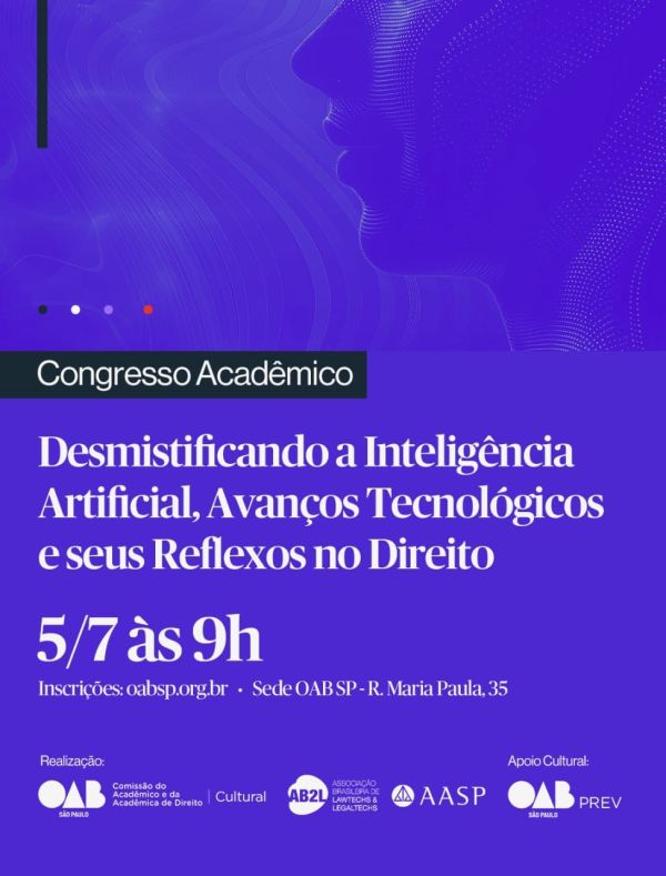 Em uma iniciativa que promete trazer à tona debates atuais e aprofundados, a Comissão dos Acadêmicos e Acadêmicas da OAB SP, em conjunto com a AB2L GenZ Law, renovou sua parceria para sediar o II Congresso Acadêmico: Desmistificando a Inteligência Artificial, Avanços Tecnológicos e Seus Reflexos no Direito. O evento está marcado para o dia... Continuar Lendo →