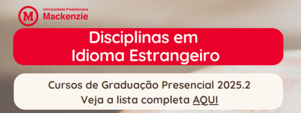 Estão disponíveis no sistema de matrícula, para as turmas correspondestes dos estudantes da Faculdade de Direito da Universidade Presbiteriana Mackenzie (FDir), as disciplinas de idioma estrangeiro do segundo semestre de 2025. Veja a seguir a lista completa de matérias: Entrepreneurial Projects (Projetos Empreendedores) - Para os alunos da 6° etapa; Organization of State and Separation... Continuar Lendo →